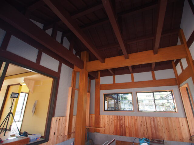 「二階建て」の古民家を「平屋建て」に刻み直して再築しました。